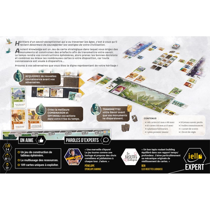 Nouveauté IELLO Expert, Ancient Knowledge est un jeu de cartes stratégique dans lequel vous érigez des monuments et construisez des artefacts.
