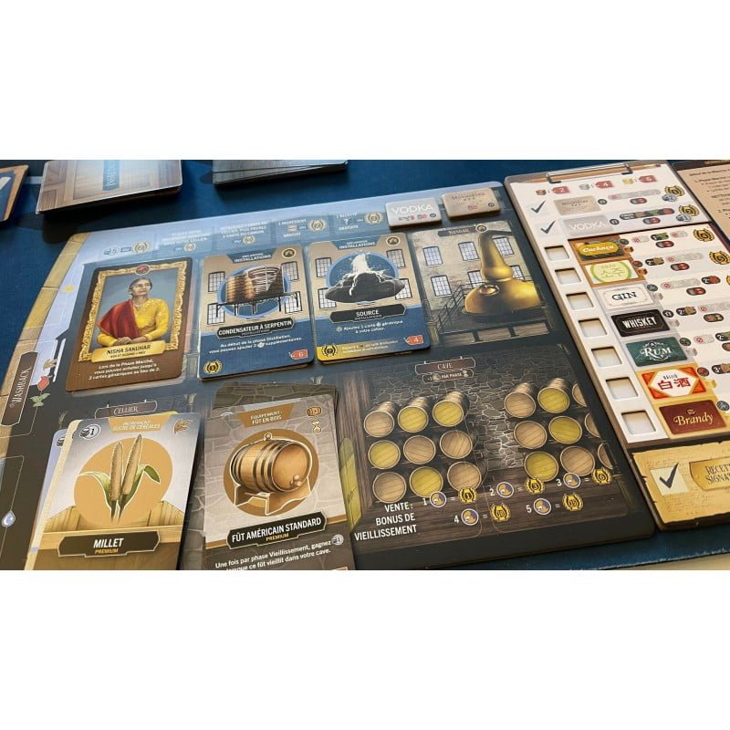 Obtenez le titre de Maître Distillateur en ayant le plus de points de victoire à la fin du jeu. Les points sont obtenus en distillant et en vendant des spiritueux.