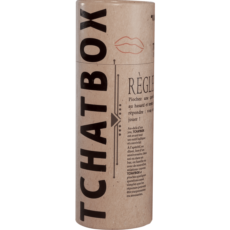 La gamme TCHATBOX se décline en 3 versions, chacune ayant sa couleur et proposant des questions de plus en plus impliquantes. Il est également possible de mélanger les questions de chacun des tubes dans un seul afin de proposer l’ensemble des questions pour pimenter encore plus l’expérience !
