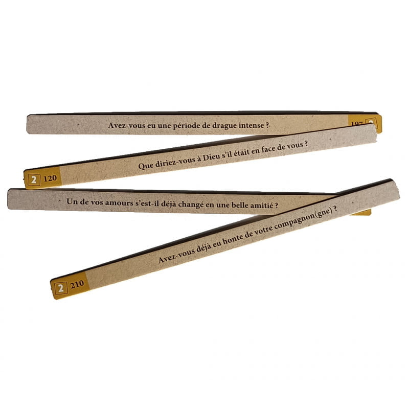 Piochez une question et répondez-y selon votre humeur : soit succinctement, soit en développant avec une anecdote et continuez ce moment de partage en échangeant autour de cette question avec vos convives, ou passez à la question suivante, c’est aussi simple que cela. Pas besoin d’autre chose qu’un tube de TCHATBOX pour générer de l’émotion, des rires et de la complicité.