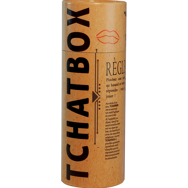 La gamme TCHATBOX se décline en 3 versions, chacune ayant sa couleur et proposant des questions de plus en plus impliquantes. Il est également possible de mélanger les questions de chacun des tubes dans un seul afin de proposer l’ensemble des questions pour pimenter encore plus l’expérience !